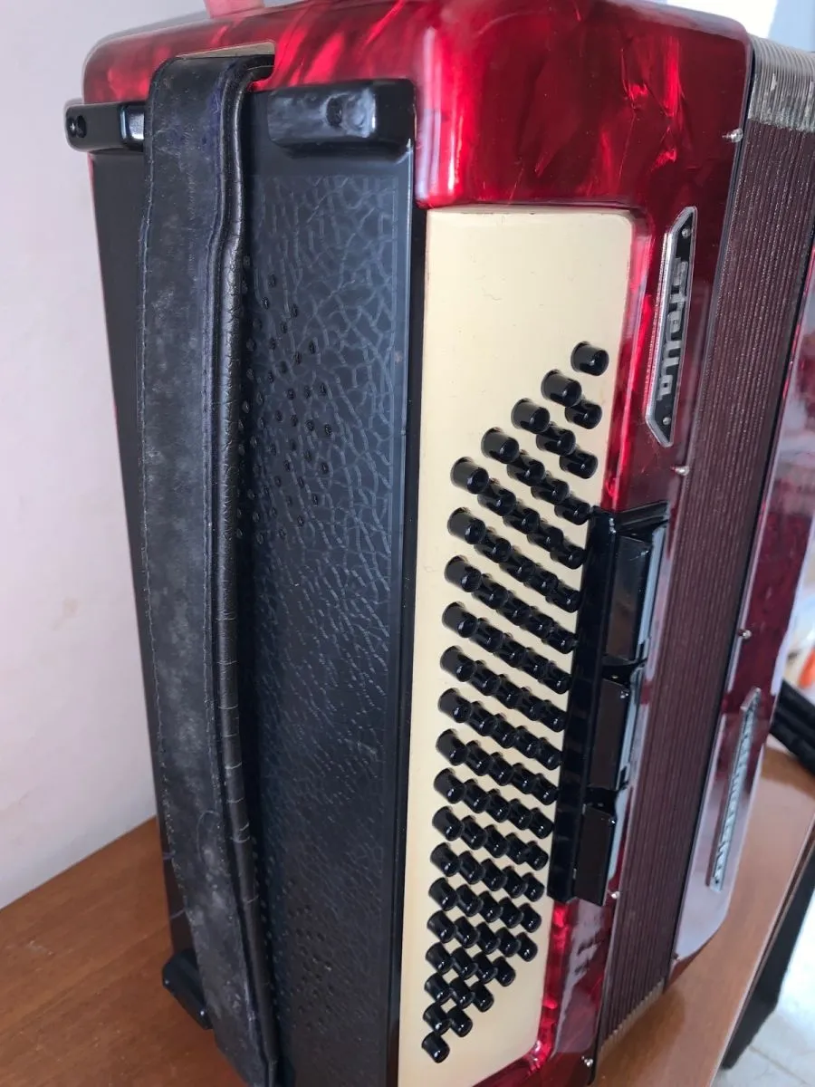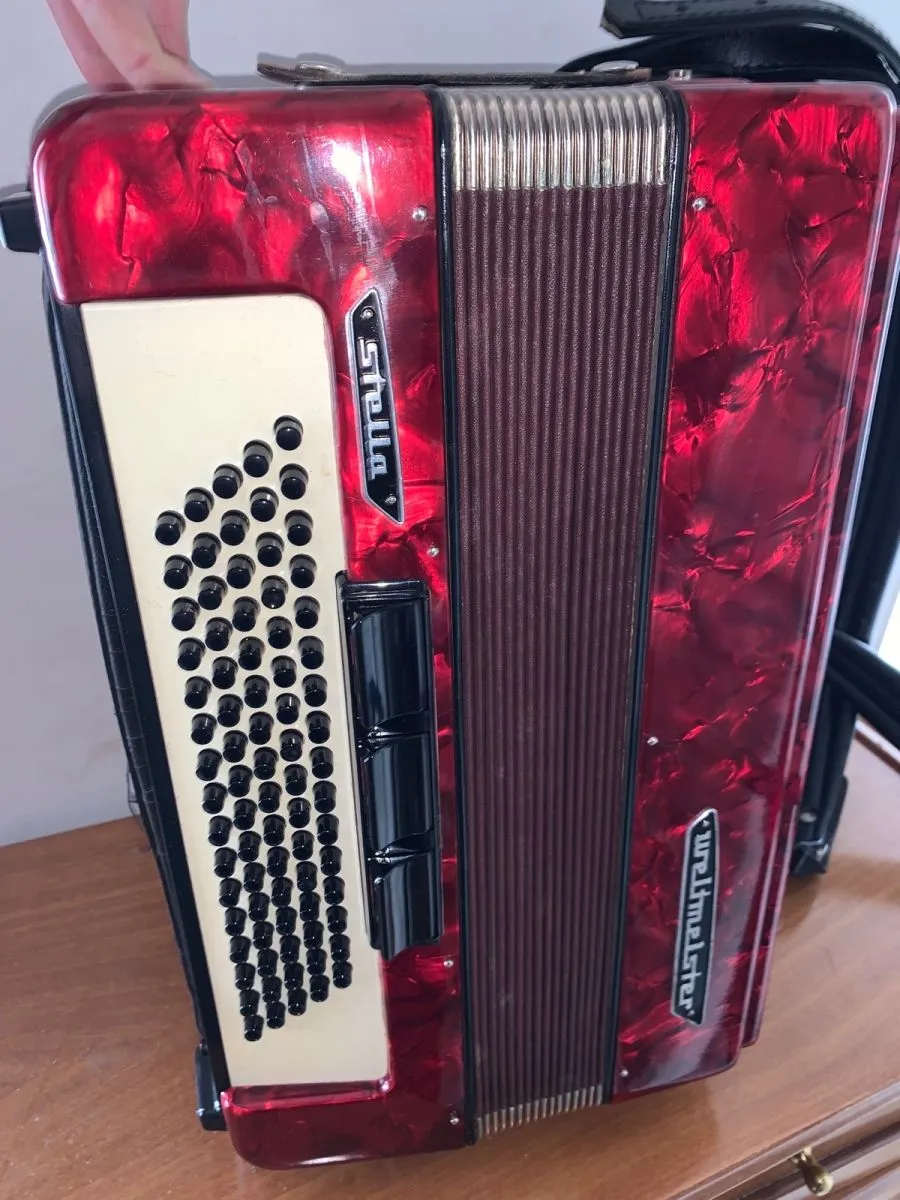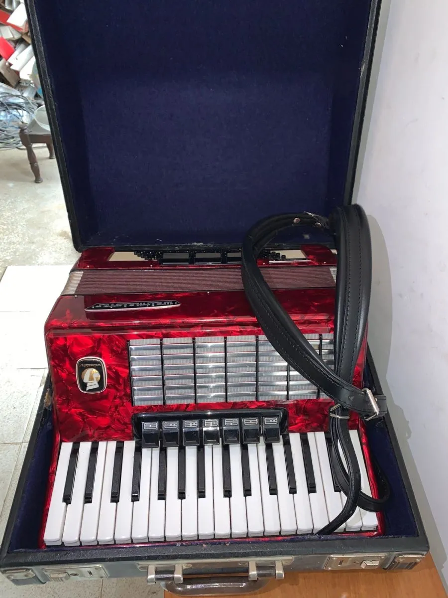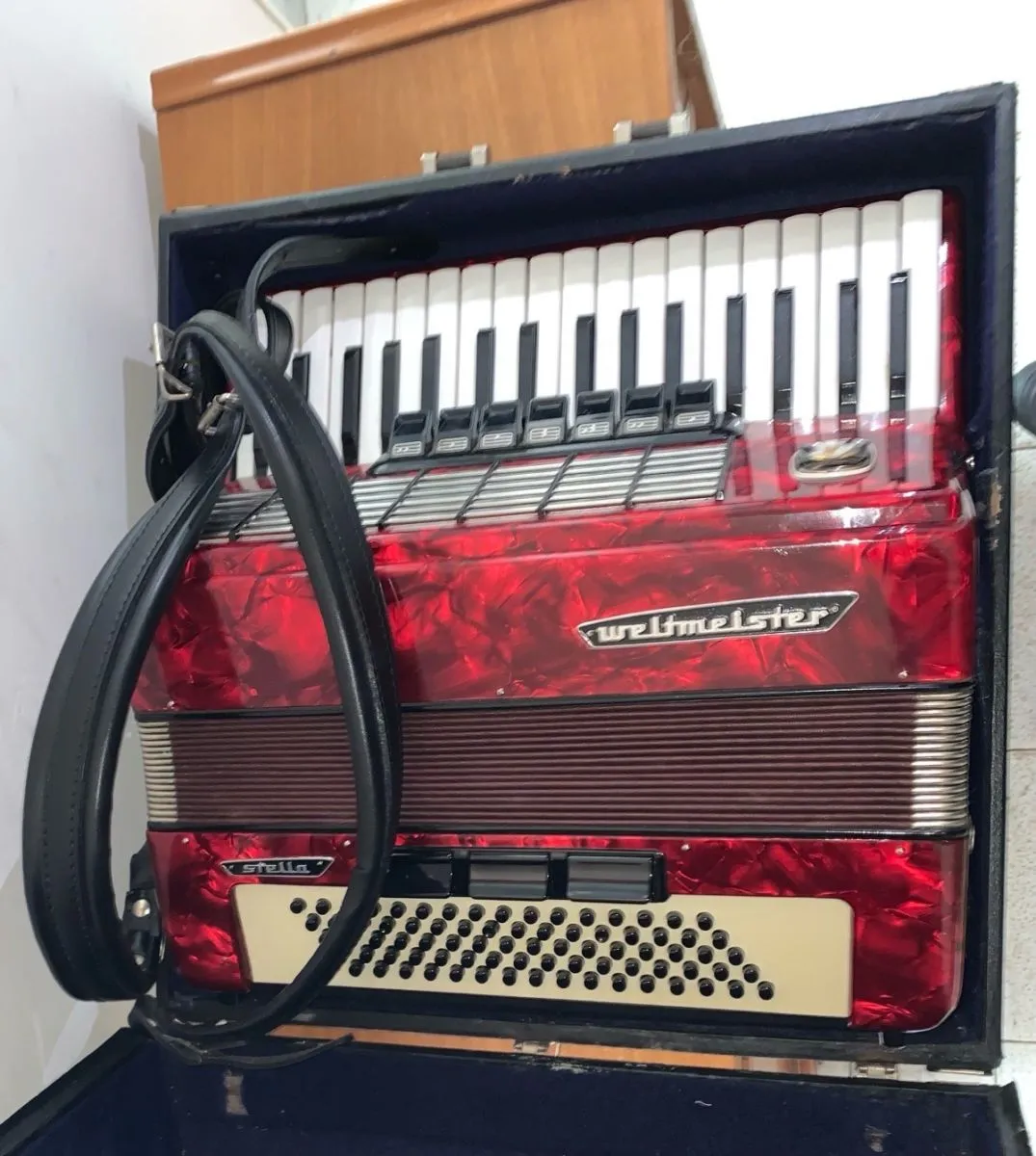 Ακορντεόν weltmeister stella 80 bass. Αγοράστηκε τη δεκαετία του 1980 από τη Γερμανία αλλά χρησιμοποιήθηκε ελάχιστα. Βρίσκεται σε άριστη κατάσταση μαζί με τη θήκη του.