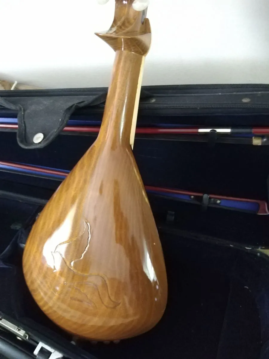Το σκαφος ειναι απο κελεμπεκι (σφενταμι), το καπακι απο κεδρο, η ταστιερα απο κατρανι, ο κατω καβαλαρης απο καρυδια και ο πανω απο εβενο. Η κολλα που χρησιμοποιηθηκε ειναι απο λεπια ψαριων (ψαροκολλα) και το λουστρο απο ρητινη δεντρου (γομολακα).