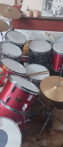 Το καθε σετ αποτελειται απο μια μποτα μαζι με το πεταλι της ,δυο τομ,ενα ταμπουρο,ενα βαθυ,και στο κοκκινο ενα σετ με δυο μπονγκος.