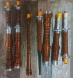 Σκωτσέζικη γκάιντα αμεταχείριστη, δεν έχει χρησιμοποιηθεί ποτέ, σε άριστη κατάσταση, στο κουτί της μαζί με όλα τα παρελκόμενα από ξύλο τριανταφυλλιάς (rosewood). Δεκτός έλεγχος.