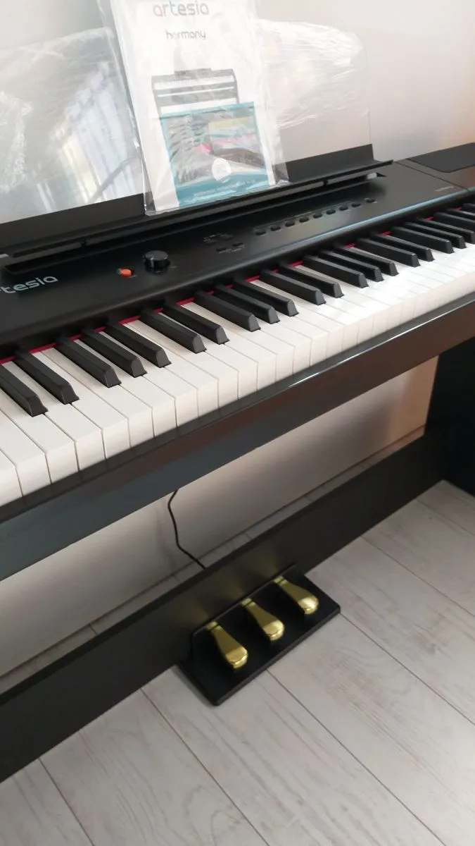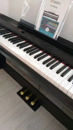 Ηλ.Πιάνο HARMONY από την ARTESIA, με Ξύλινη Βάση και 3 Πετάλια, Slim Line Σχεδίαση. Διαθέτει 88 Βαρυκεντρισμένα Πλήκτρα, Ρύθμιση Ευαισθησίας σε 5 Επίπεδα, 16 Ήχους, Μονάδα Εφφέ με Eq, Usb Σύνδεση με Υπολογιστή, Tablet με Μουσικές Εφαρμογές, αλλά και μέσω Midi, Ηχεία 2×20 Watt, Audio In, Audio Out. Βάρος 13kg. Διαστάσεις 131 x 34 x 13cm.