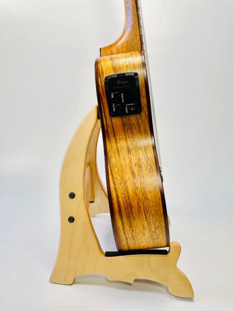 Πωλείται σε εξαιρετική κατάσταση το ηλεκτρακουστικό ukulele Ortega RUMG-CE μαζί με τη θήκη και τη βάση της φωτογραφίας.
