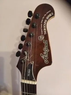 Ηλεκτρική κιθάρα Aria Pro II Thor Sound TS-300 80’s αυθεντική σε καλή κατάσταση made in Japan με ωραίο ήχο για solo και ρυθμικό παίξιμο. Φέρει ένα control έντασης, δύο tone controls, διακόπτη 3 θέσεων και διακόπτη coil split. Έχει γίνει σέρβις στα ηλεκτρικά και έχουν αλλαχθεί τα κλειδιά, χρειάζεται καινούργιες χορδές. Συνοδεύεται με δερμάτινη χειροποίητη μαλακή θήκη.