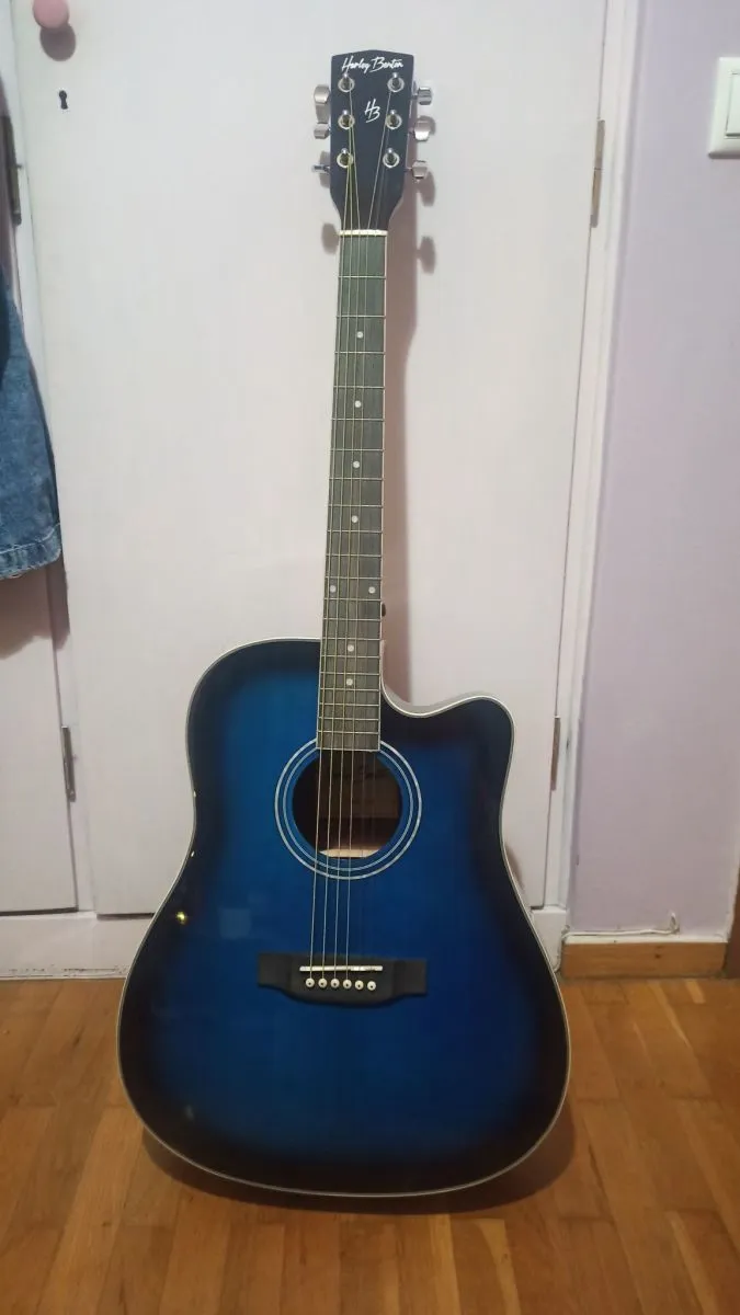 Μπλέ ηλεκτροακουστική κιθάρα Harley Benton. Ελάχιστα χρησιμοποιημένη. Πρόσφατα αλλαγμένες χορδές.