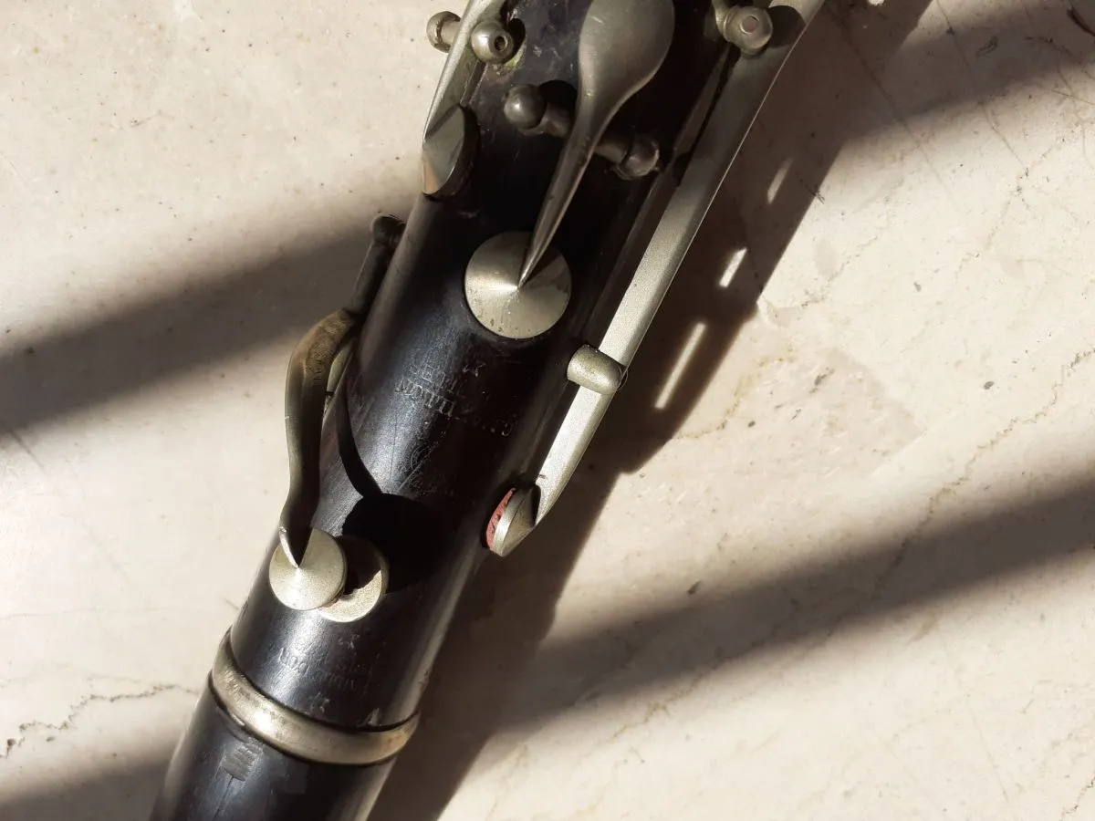 Πολυ παλιο κλαρινο σιμπεμολ με σταμπες στα κοματια και στο πανω μερος εχει και μια επιπλεον σταμπα που γεφει (Paris 1879)..