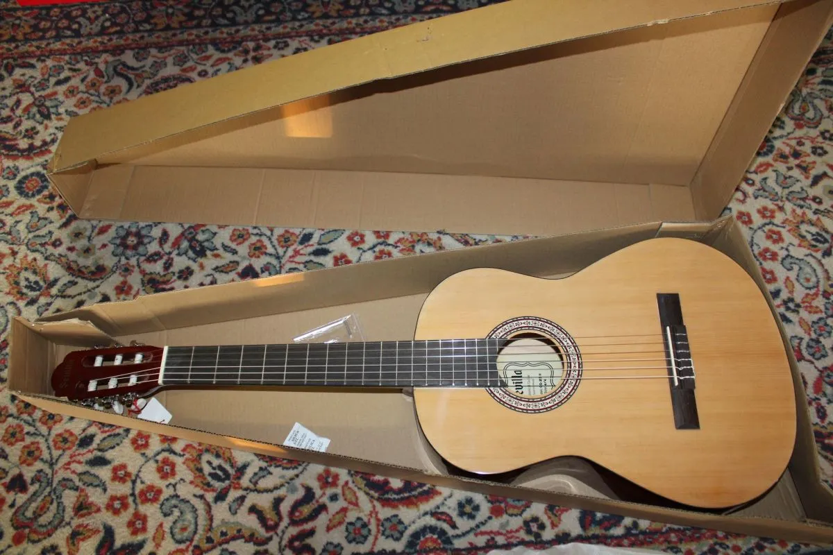 ολοκαίνουργια κλασική κιθάρα. Δεν έχει χρησιμοποιηθεί καθόλου. Είναι σε εξαιρετική κατάσταση. Πωλείται επειδή την κέρδισα σε κλήρωση και δεν ξέρω να παίζω κιθάρα.