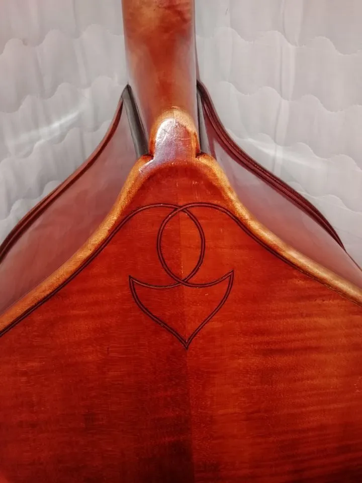 -“Λοξό” πόδι Krutz, για κατανομή βάρους – ισορροπία του οργάνου. Απομακρύνει τον κίνδυνο καταπόνησης αυχένα, ώμων, αριστερού χεριού – αντίχειρα, πλάτης.