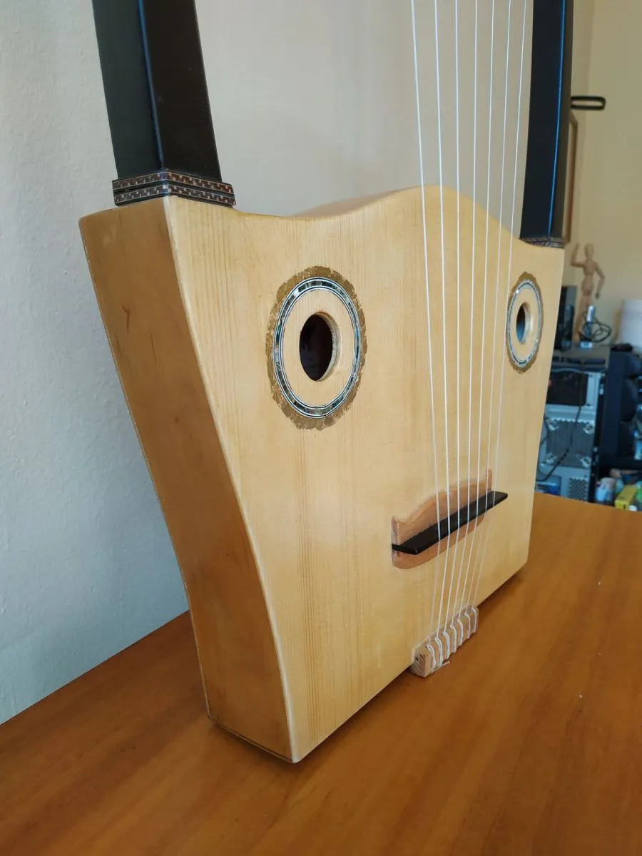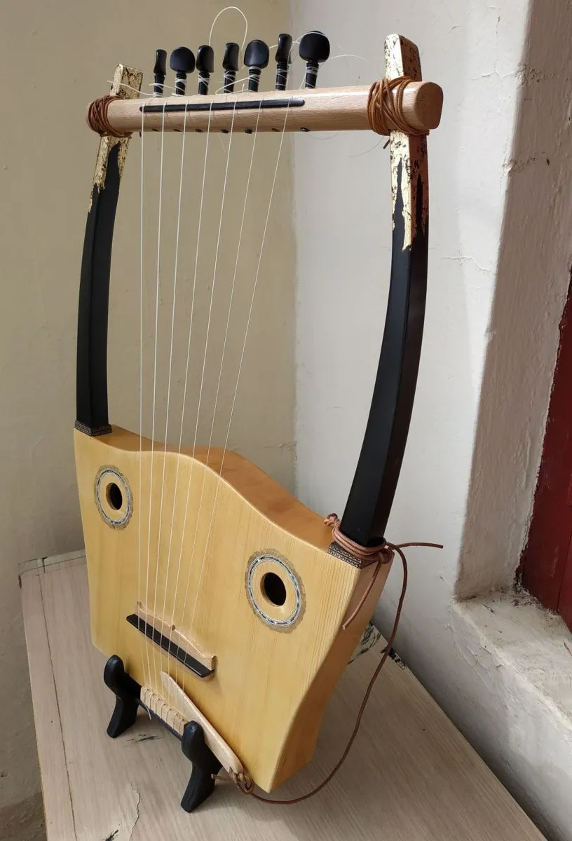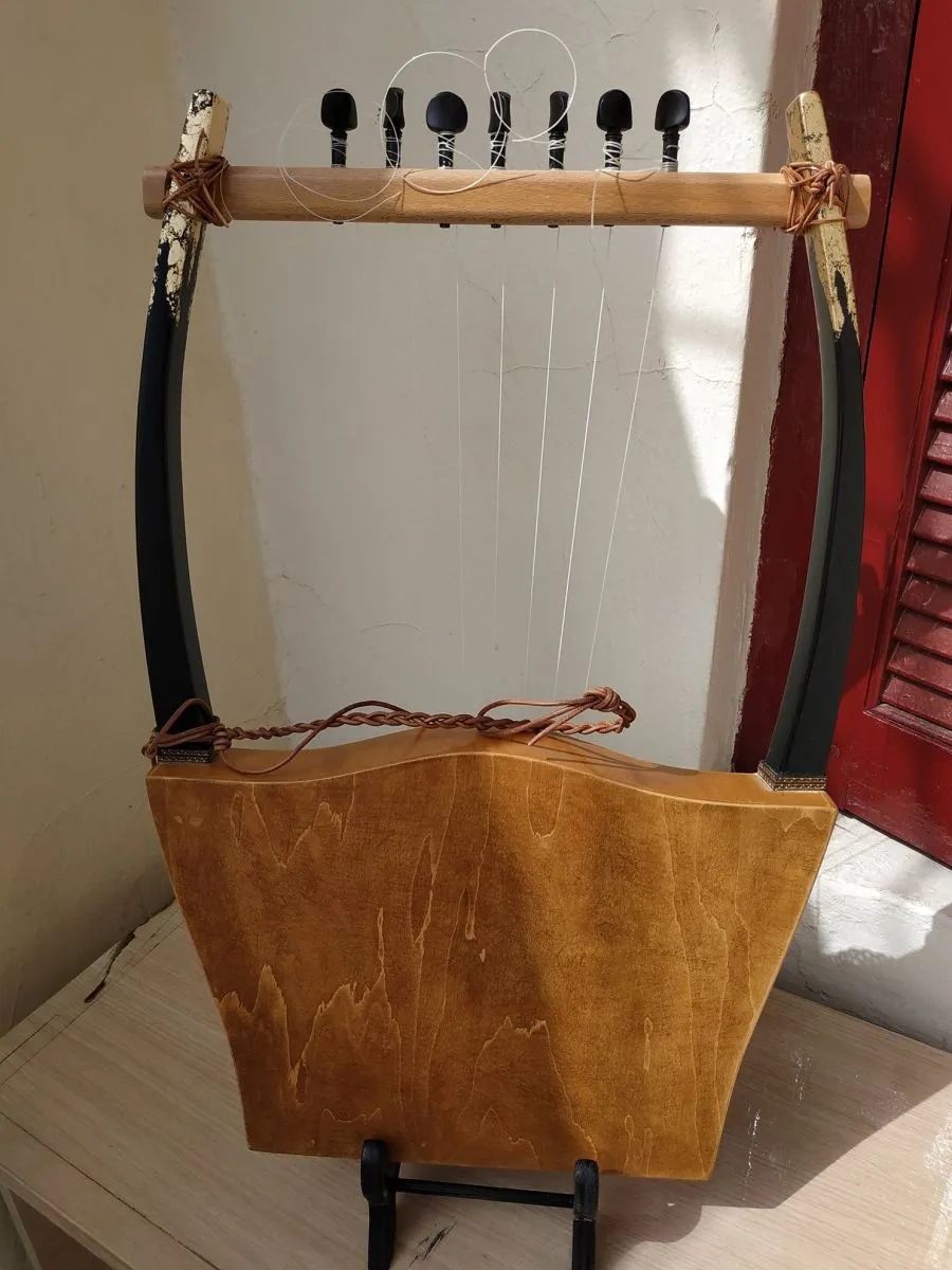 Μοναδική χειροποίητη αρχαία ελληνική κιθάρα, μοντέλο “ERATO”, εμπνευσμένη από την ελληνική αρχαιότητα. Ηχείο από έλατο, σκάφος από σημύδα, γέφυρα και κλειδιά έβενος. Οι χορδές από ζαχαροκάλαμο ειδικού τύπου για αρχαία όργανα. Φινίρισμα γομαλάκα, διακόσμηση από φυσικό όστρακο άμπαλον και κρακελέ από φύλλο χρυσού. Κούρδισμα ματζόρε ή μινόρε και σε όλες τις αρχαίες κλίμακες, δωρική, λυδική, ιωνική κλπ. Με 7 χορδές, φιλική με όλους που ακόμη δεν έχουν κάποια εμπειρία με την μουσική, μπορούν να παίξουν τις πρώτες μελωδίες. Ήχος ξεχωριστός.https://www.youtube.com/watch?v=6OQu5N8eDm8&ab_channel=GiannisPapoulias