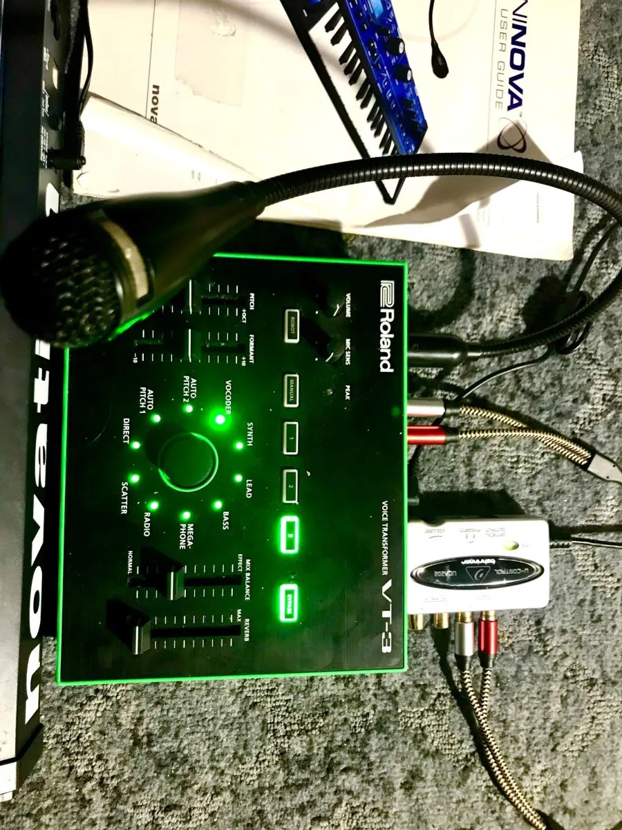 Πωλούνται δύο σετ κωδικοποιητών φωνής και αξεσουάρ, συμπεριλαμβανομένων ενός Novation Mininova, Roland VT3, Novation Gooseneck mic και Behringer UCA 202 USB PC audio box για εγγραφή κωδικοποιητών φωνής στο Audacity.