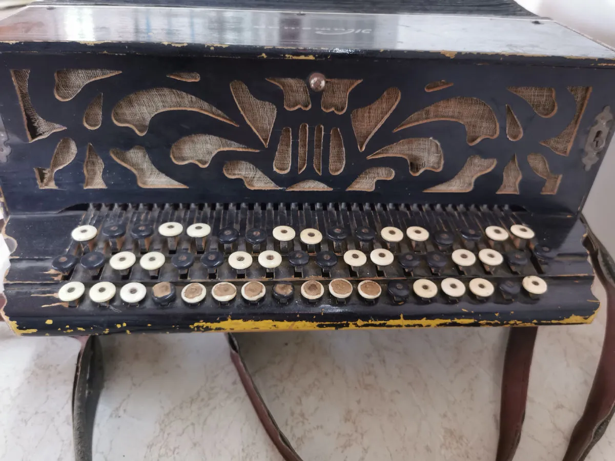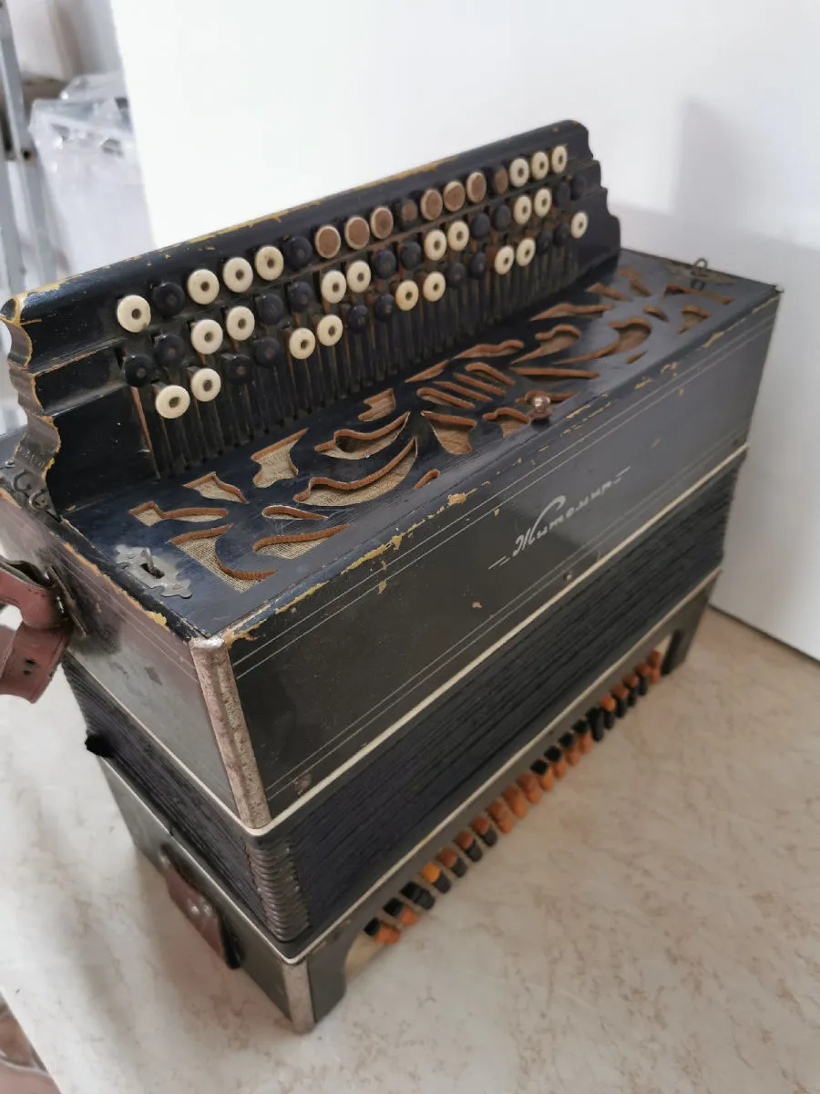 Σε πολύ καλή κατάσταση πωλείται το συγκεκριμένο ακορντεόν. Είναι ρωσικό και υπάρχει ένα περίπου ίδιο επίσης ρωσικό με την θήκη του. Αν αγοραστούν και τα 2 μαζί θα γίνει καλύτερη τιμή.