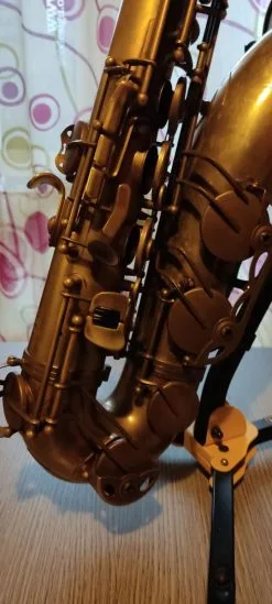 Αγρατζούνιστο, χωρίς χτυπήματα, με υπέροχο vintage ήχο, μαζί δίνεται, εκτός από το δικό του επιστόμιο και το Vandoren V16, T5 Large chamber (μεταλλικό), με σφηγκτήρα Vandoren V16, θήκη και ζώνη. Πολύ εύκολο στο παίξιμο, με απίστευτη ποιότητα κατασκευής.