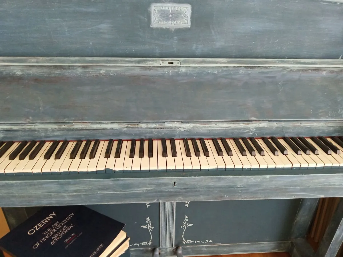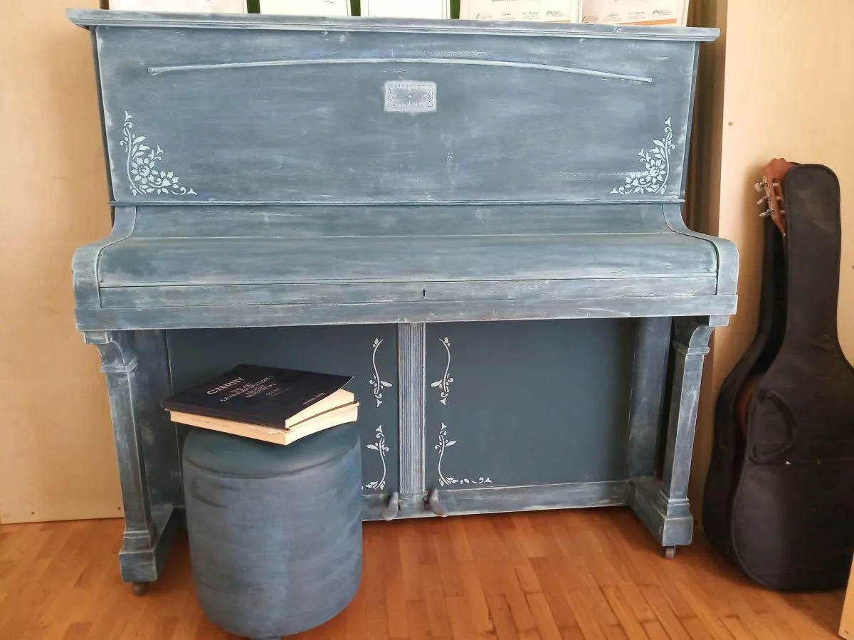Το πιάνο βρίσκεται στο σπίτι μας από το 1983 και έχει βαφτεί πρόσφατα με χρώματα κιμωλίας.