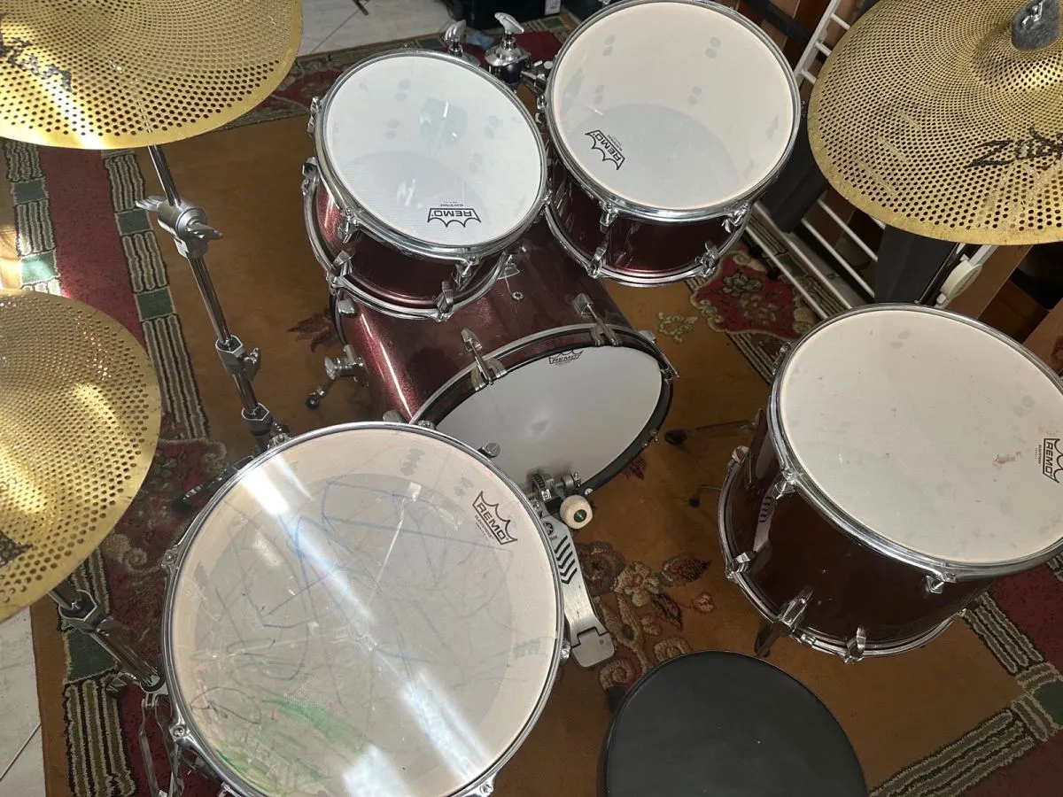 τύμπανα Yamaha rydeen με έξτρα δέρματα silentroke μαζί με hi hat,ride & crash low profile l80 zildjian. Τα κανονικά δέρματα είναι στα κουτιά( μη χρησιμοποιημένα).