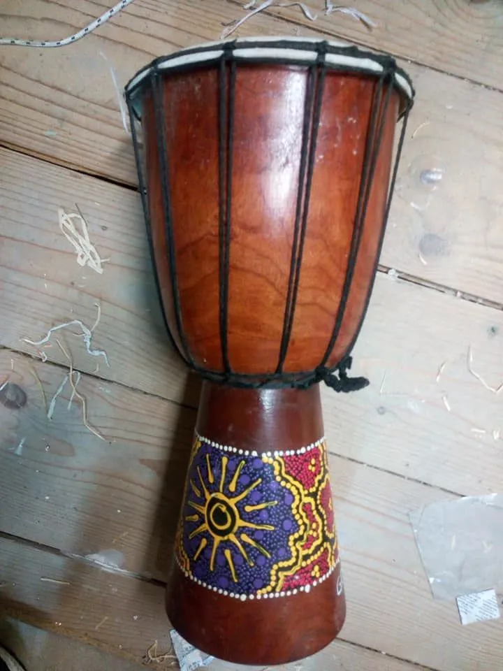 τυμπανο ξυλινο 40εκ ζωγραφισμενο με δερμα αγελαδας